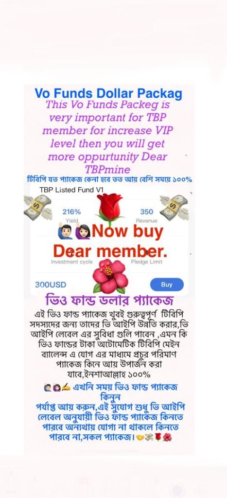 This Vo Funds Packeg is very important for TBP member for increase VIP level then you will get more oppurtunity Dear TBPmine